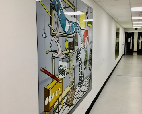 The finished panels are approx. 2m x 2.5m. Inkjet print onto Dibond panels.