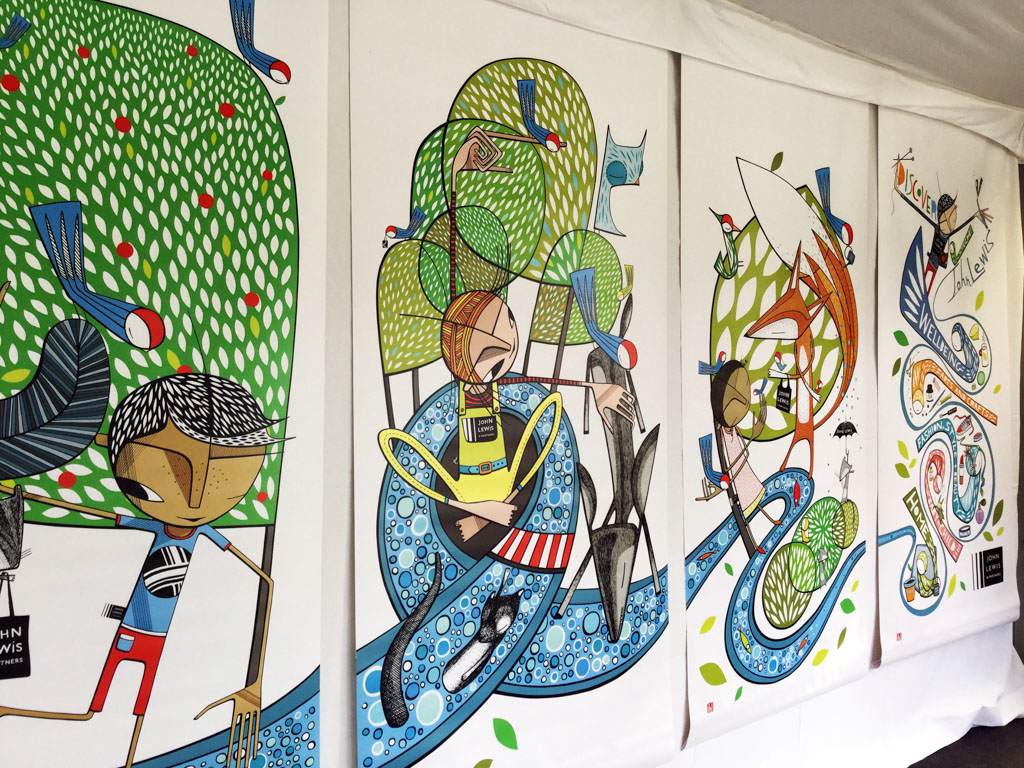 Large scale illustration for the John Lewis and Partners children’s Discovery Tent at the Cheltenham Literary Festival 2019.