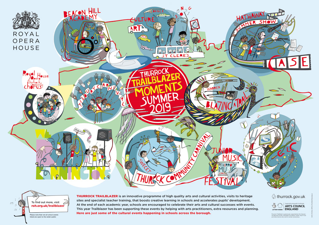 For the second year on the trot, I have had the pleasure to illustrate for Thurrock Trailblazer – an innovative programme of high quality arts and cultural activities initiated and programmed by the Royal Opera House in collaboration with Thurrock Council, and aimed to enhance the creative experience of local school children.