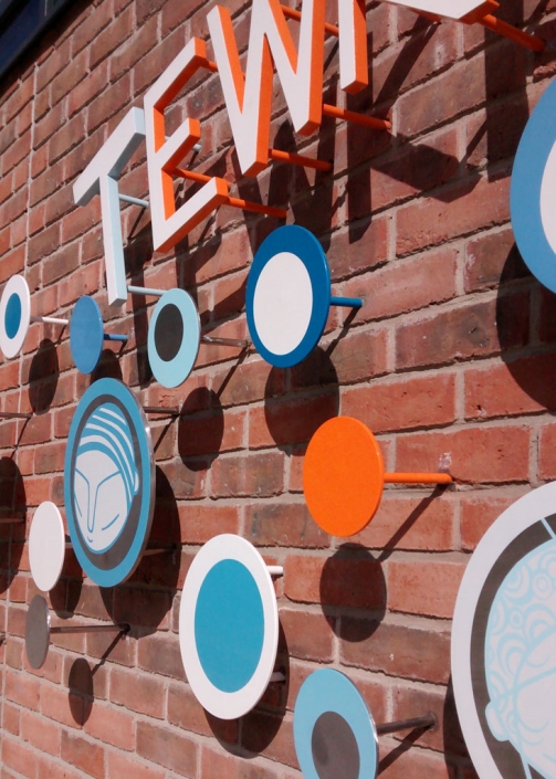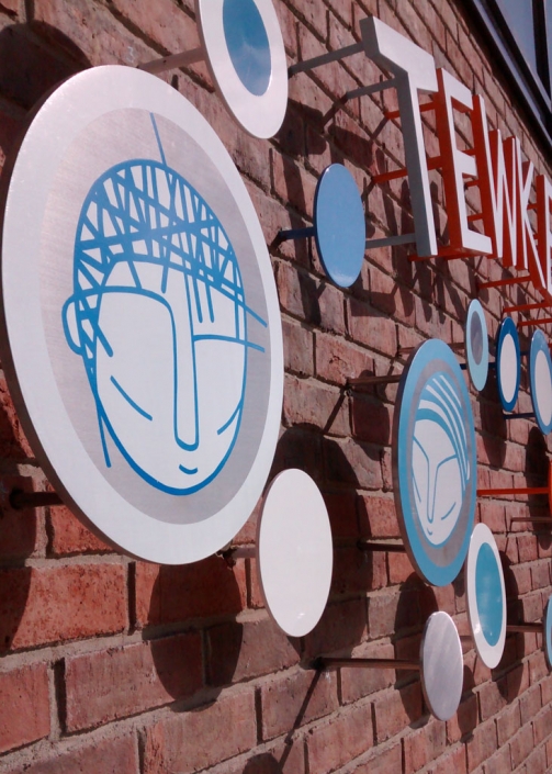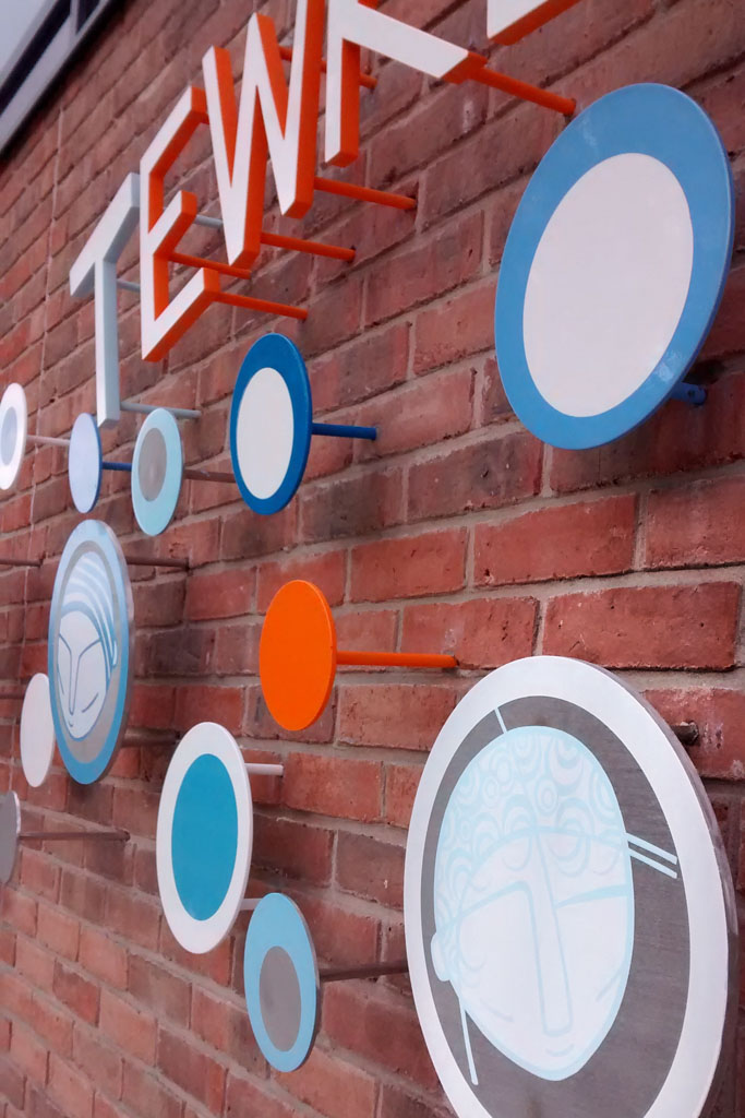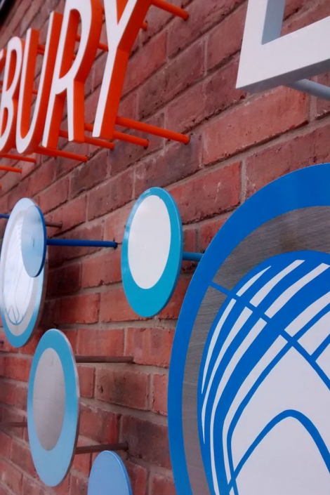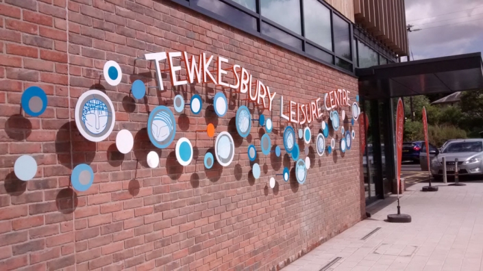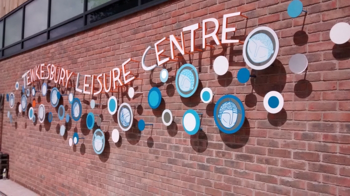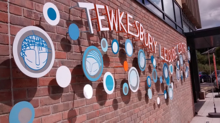 Client brief: An original sculptural art work to include signage for the newbuild Tewkesbury Leisure Centre. The design must be sympathetic to its community and physical surroundings. Guaranteed for up to 10years.