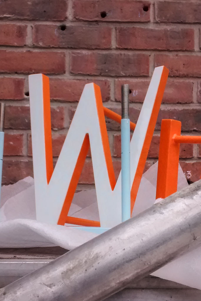 Project managing the fabrication and evolution of this work was part of my brief. Managing budgets, identifying, engaging and liaising with steel engineers, external metal screen printers/ etchers, and a powder coating company resulted in a sympathetic and streamlined aesthetic. Guaranteed to 10years minimum.